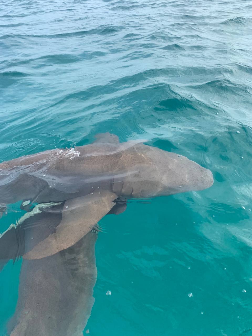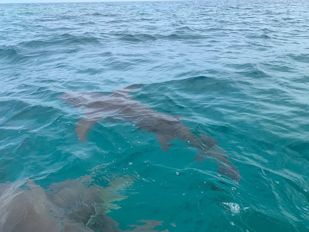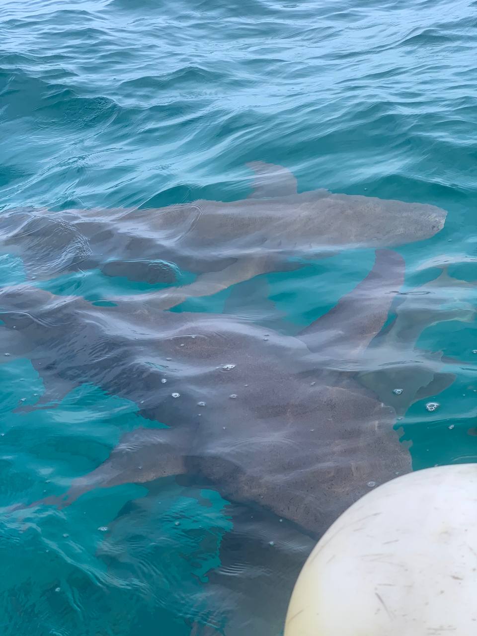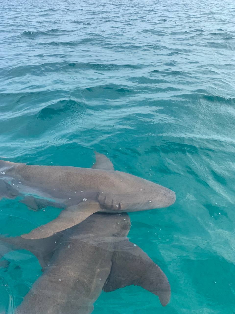 I was so focused on the sharks that I didn't even notice one swimming underneath me until it brushed past my belly, which made me scream through my snorkel.
